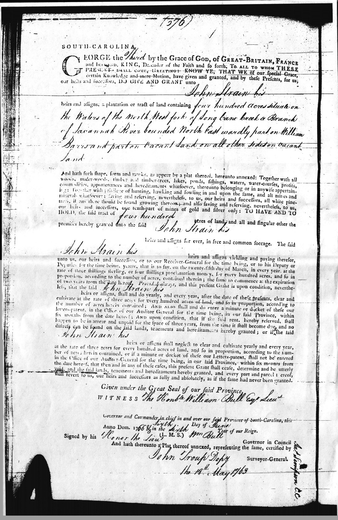 - Original land grant, South Carolina.